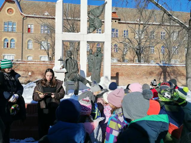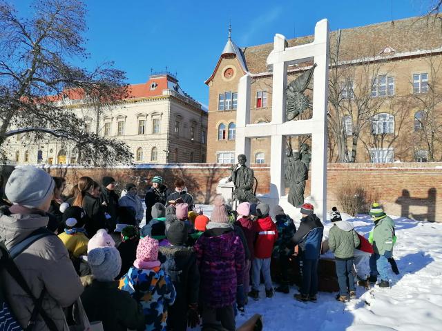 A 8. évfolyam József Attila vásárhelyi szobránál tett látogatást...