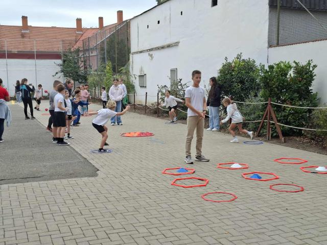 Az Európai és Magyar Diáksport Napjának jegyében vittük véghez az iskolában minden mozgásos tevékenységünket. Reggeli torna nyitotta a napot, majd a kézilabda sportág népszerűsítése nyert teret a délelőttön. A hetedik évfolyamosok testnevelőjük ösztönzésére egyenesen a kicsik bátorítóivá lettek a sportnap keretében. Sűrűbben pattant pénteken a labda, több szökkenést ugrott ma diák és felnőtt, és ujjongó játékos hangosság töltötte meg a suliudvarokat éppúgy, mint a tornatermeket. Érdemes lendületben maradni!